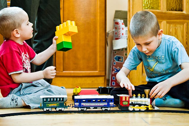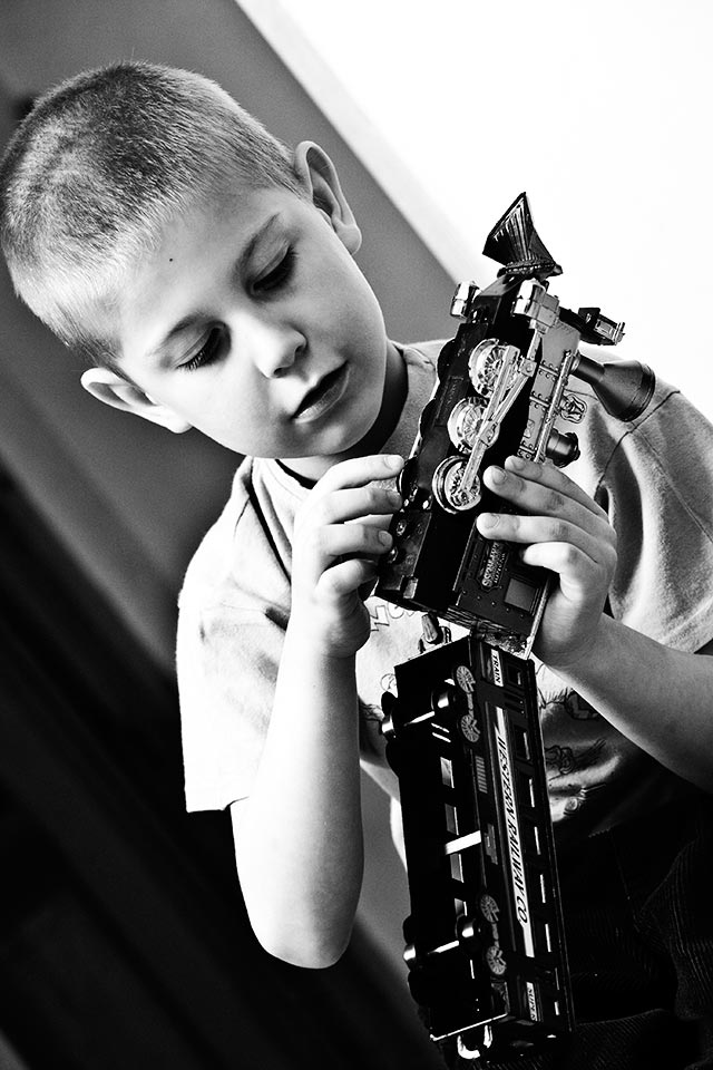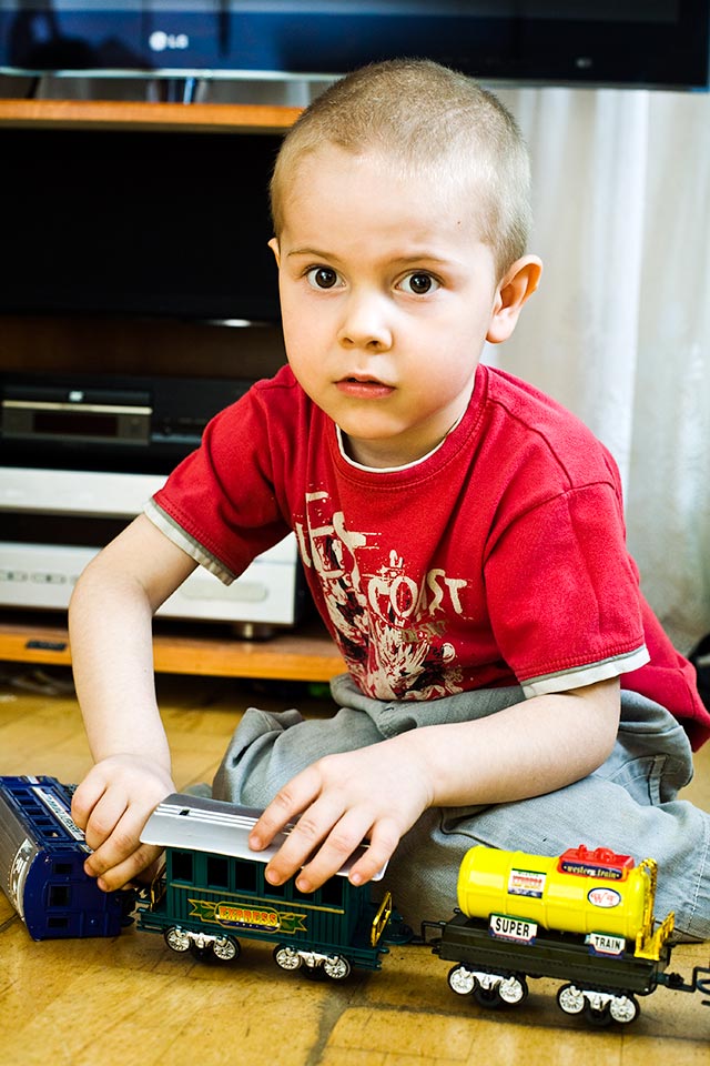 Jak ten czas szybko ucieka. Pamiętam jeszcze wanienkę i wspólne kąpiele, zawijanie w ręcznik i radosny śpiew „kto dogoni psa, kto dogoni psa..” podczas suszenia. Teraz chłopcy jak malowani rosną w oczach, a na zadawane pytania coraz trudniej się odpowiada. Tadzio własnie ukończył 6 lat i na swoje urodziny dostał w prezencie kolejkę elektryczną. Chłopcy szybko opanowali nową zabawkę.