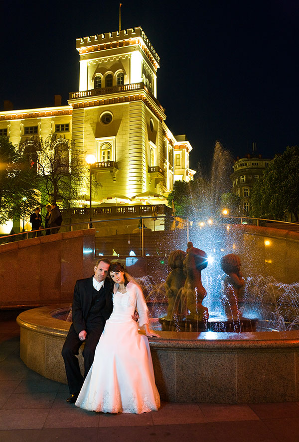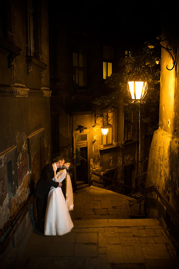 Po plenerze udaliśmy się do Bielska i poczekaliśmy, aż zapadnie zmrok. Gdy się już ściemniło rozstawiliśmy statywy oświetleniowe w centrum Bielska. Przyznam wzbudzało to niemałą sensację. Przemieszczanie się z tym całym „złomem” było bardzo kłopotliwe. Bez Artura nie dałbym rady.